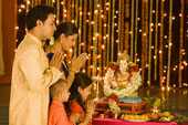 Ganesh, the elephant God, is believed to be the God of power and wisdom. He is assumed to be very auspicious and people pray to him before starting any auspicious work. During Ganesh Festival, shops or local markets will fill with Ganesh idols of various sizes, shapes and on different themes. Two or three weeks prior to the festival, clay idols of Ganesh of different sizes and colours are made by artisans; people buy idols depending on their choices and budget.