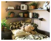 If Dad is in the service, you might let your boy feel patriotic with a room painted in camouflage and outfitted with tanks and desert colors. But leave the guns out!