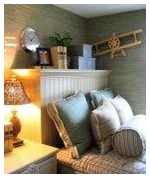 Most every child loves spending time at camp or in the mountains. And what parent doesn’t have happy childhood memories of hiking, boating, fishing, or just enjoying the outdoors. Birdhouses, bears, moose, and fish might show up in wallpaper borders, in fabrics, bedding, and accessories. For a rustic room you might also choose comfy plaid patterns, flannel fabrics, and log or pine beds. Accessories might use forest themes of animals, mountain scenes, or natural materials such as pine cones, leaves, and sticks. Take another cue from camp and use a sturdy trunk to store toys. With a room this nice, who needs a vacation?
